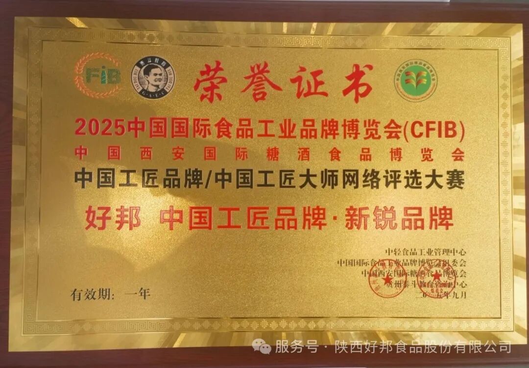 凭借其作为中国-中亚五国元首峰会、第十四届全国运动会及陕西省第十七届运动会鸡肉专供企业的卓越品质与信誉,好邦食品在展会期间荣膺大会颁发的“中国工匠品牌-新锐品牌奖”这一重要荣誉。