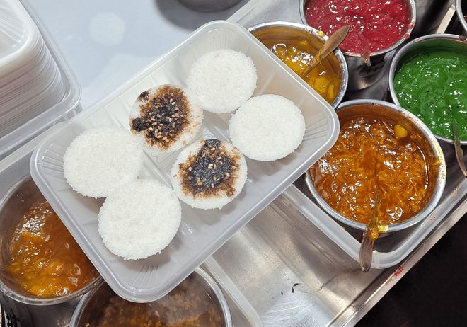 熟梨糕是天津街头的 “甜蜜小食”,推着小车的师傅走街串巷,车上的小蒸锅冒着热气,一掀开盖,梨香就飘满整条街。做熟梨糕的原料很简单:把熟梨打成泥,和糯米粉按比例拌匀,揉成小团放进特制的圆形模具里,蒸 3 分钟就能脱模,再淋上红糖浆、山楂酱或豆沙,看着就诱人。