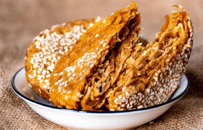 麻酱烧饼是天津人家的 “家常小吃”,早上配碗豆浆,晚上就着粥,都能吃两个。做烧饼的关键在麻酱:得用纯芝麻酱,加少许白糖和温水搅匀,要稠得能挂住勺;面团发好后擀成薄片,抹上厚厚的麻酱,卷起来切成小块,再擀成圆饼,刷上糖水撒上芝麻,放进烤箱烤到金黄。刚出炉的麻酱烧饼冒着热气,咬一口会掉渣。