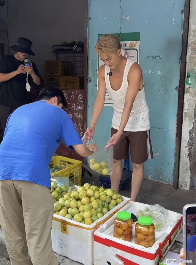 吃得差不多饱了,吴克群又路过一个水果摊,看见摊主是一位老婆婆,便主动上前帮忙卖水果,完全没有一点明星架势!