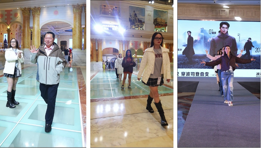 位于上海环球港4楼的环球大厅,一边连着玻璃廊桥和天幕,成为天然的演艺秀场;另一边连着商场的丰富业态,吃喝玩乐购一步直达。当日傍晚,环球港联合刚刚入驻大中华区首店的户外品牌EIDER举行新品发布大秀活动。同时还携手服装品牌波司登,举行展示活动。